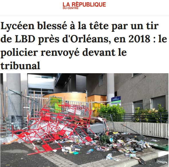 , LBD, Lycée Jacques-Monod, police nationale, Saint-Jean-de-Braye (45), tribunal correctionnel d’Orléans, violences sur mineurs, violences volontaires par personne dépositaire de l’autorité publique (PDAP),